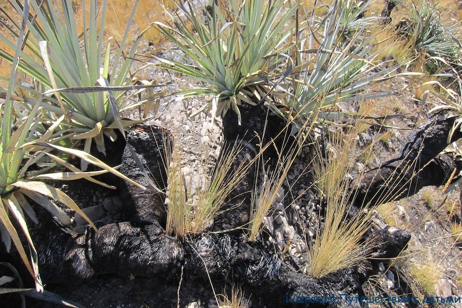 То ли обгорелые, то ли черные от природы корни растений
